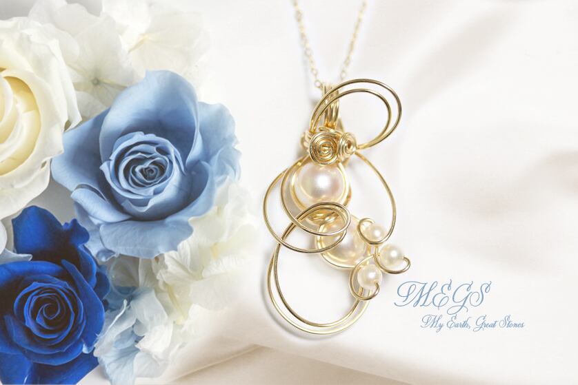 #MEGS #ジュエリー #ワイヤーアート #ワイヤーラップ #ペンダントトップ #14KGF #14kgf #イエローゴールド #あこや真珠 #伊勢志摩産 #月曜日 #曜日石 #クリスタルジュエリー #スピリチュアル #ヒーリング効果 #アクセサリー #令和