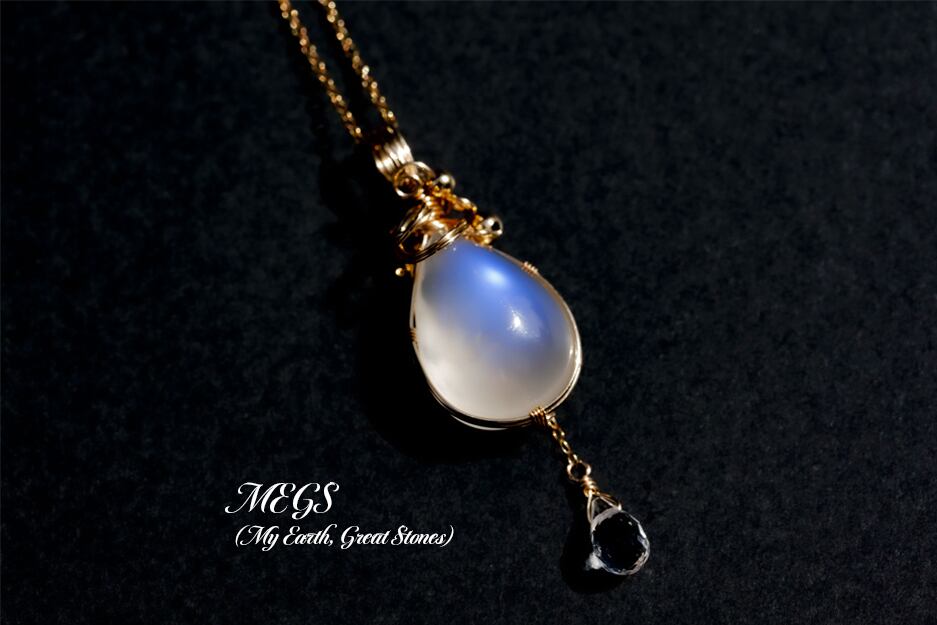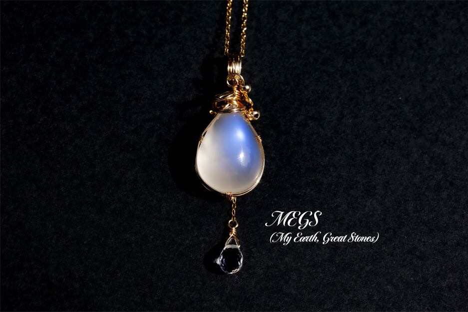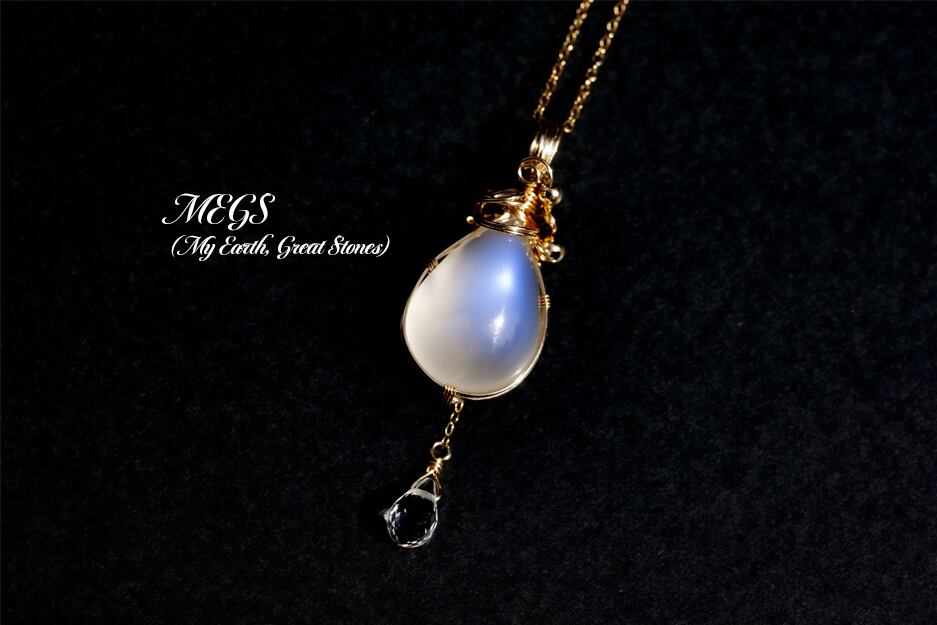 #MEGS #ジュエリー #ワイヤーアート #ワイヤーラップ #ワイヤージュエリー #ペンダントトップ #14KGF #ロイヤルブルームーンストーン #ムーンストーン #月 #しずく #誕生石 #6月誕生石 #スピリチュアル #ヒーリング効果 #2way