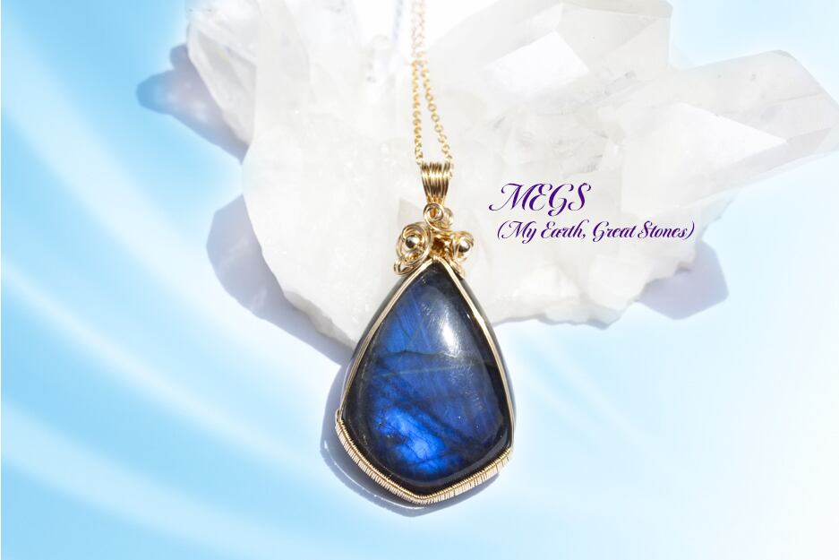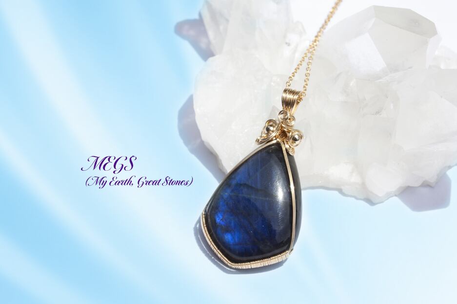 #MEGS #ジュエリー #ワイヤーアート #ワイヤーラップ #ワイヤージュエリー #ペンダントトップ #14KGF #ラブラドライト #マダガスカル産 #ラブラドレッセンス #クリスタルジュエリー #スピリチュアル #ヒーリング効果 #青 #天の川 #目標達成 #送料無料 #蝶