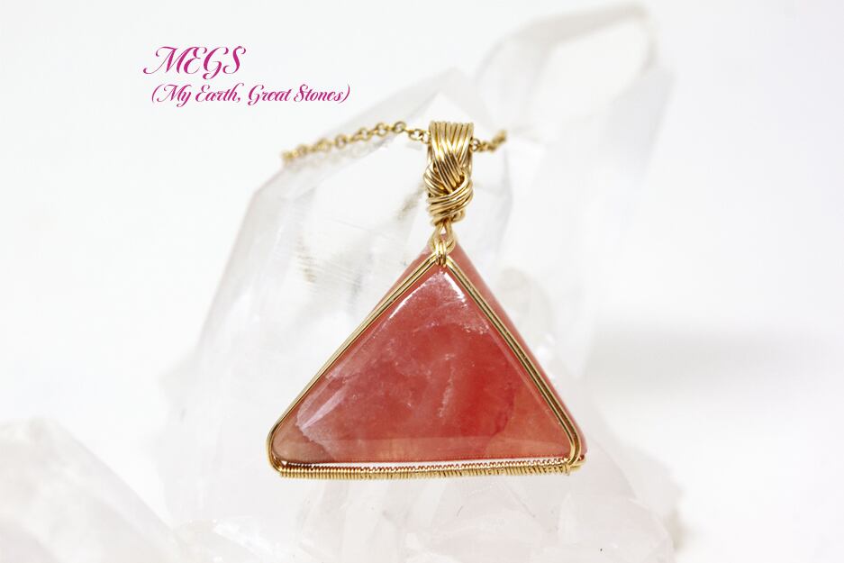 トライアングルのロードクロサイトを繊細ワイヤーアートジュエリー女神巻き®でペンダントトップに致しました。