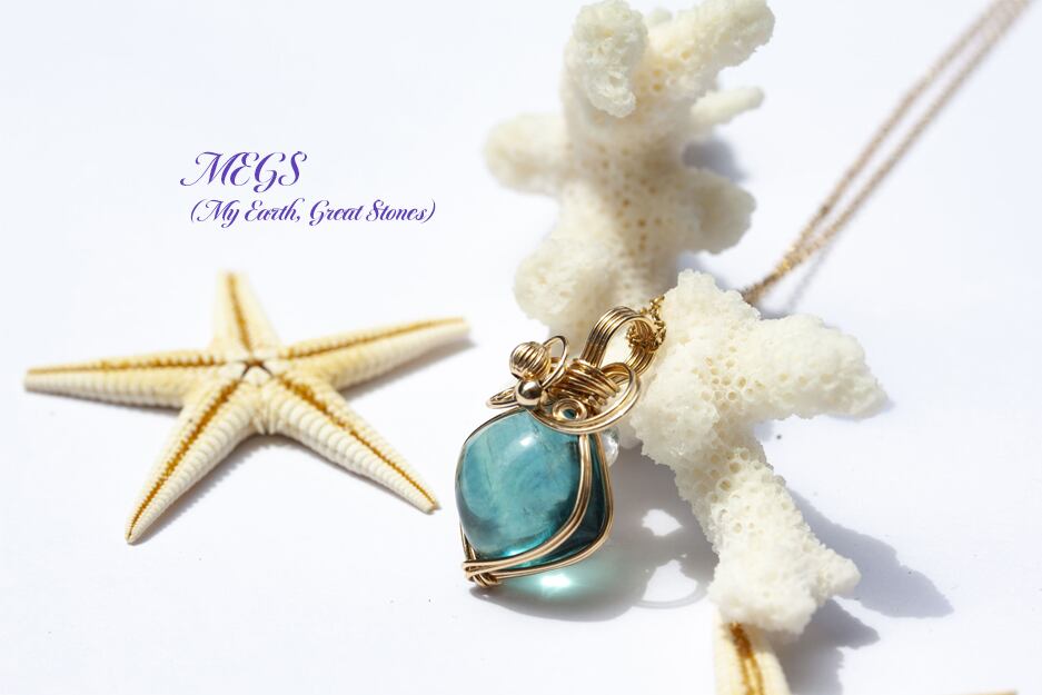 #MEGS #ジュエリー #ワイヤーアート #ワイヤーラップ #ワイヤーラッピング #ペンダントトップ #14KGF #14kgf #イエローゴールド #ブルーフローライト #蛍石 #スピリチュアル #ヒーリング効果 #ワイヤージュエリー