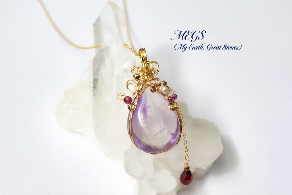 #MEGS #ジュエリー #ワイヤーアート #ワイヤーラップ #ワイヤージュエリー #ペンダントトップ #14KGF #アメシスト #アメジスト #ブラジル産 #誕生石 #2月誕生石 #クリスタルジュエリー #スピリチュアル #ヒーリング効果 #浄化