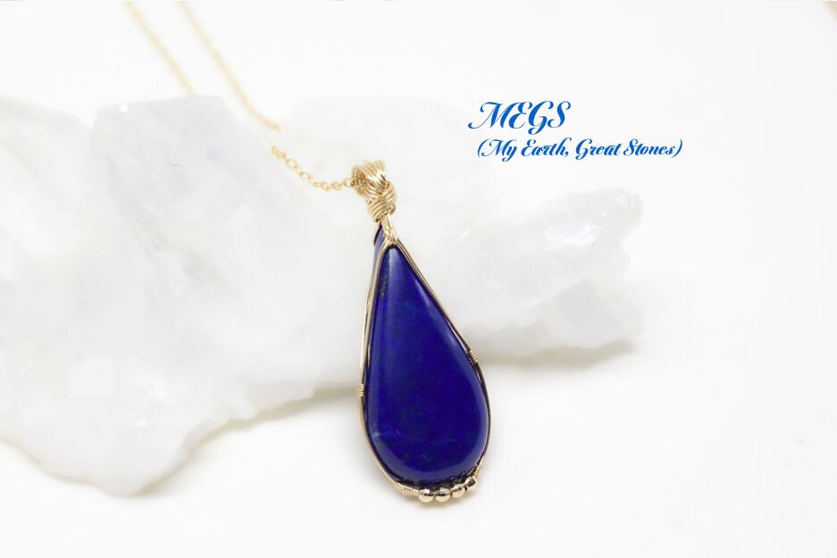 #MEGS #ジュエリー #ワイヤーアート #ワイヤーラップ #ワイヤージュエリー #女神巻き #ペンダントトップ #14KGF #ラピスラズリ #誕生石 #9月 #12月 #瑠璃色 #クリスタルジュエリー #スピリチュアル #ヒーリング効果 #波動 #送料無料 #1点もの #夏色 #満月制作