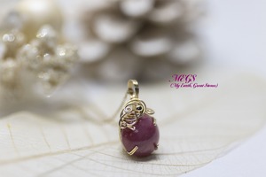 小さな発色の良いロードナイトをワイヤーで包み込みました。