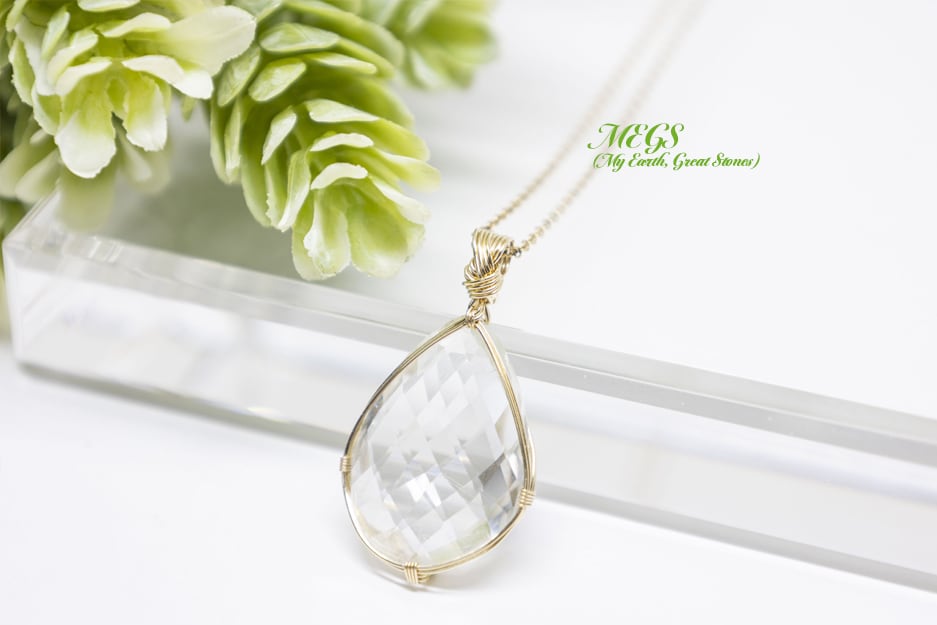 透明感が有りキレイなカットが施されているファセットカットのヒマラヤ水晶のワイヤーアートペンダントトップです。