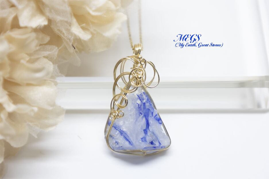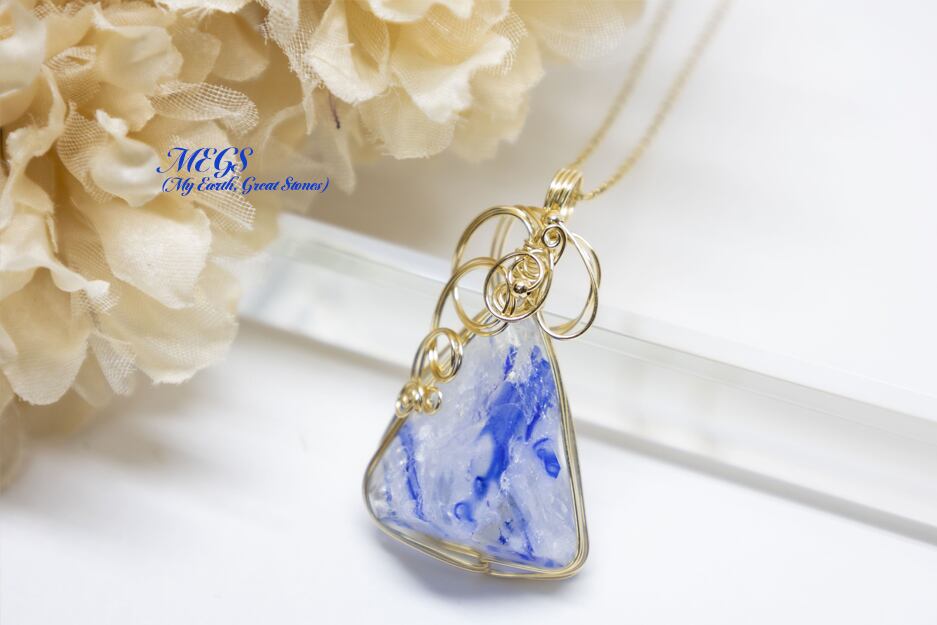【14KGF】アンダラクリスタル ホワイト×ブルー ~夏のころ ワイヤーアートペンダントトップ【新月制作】