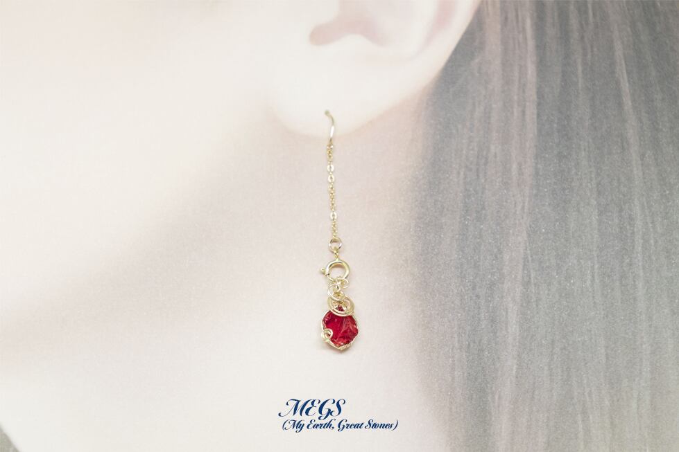 目の覚めるレッドのアンダラクリスタルをワイヤーで巻き上げましたピアス